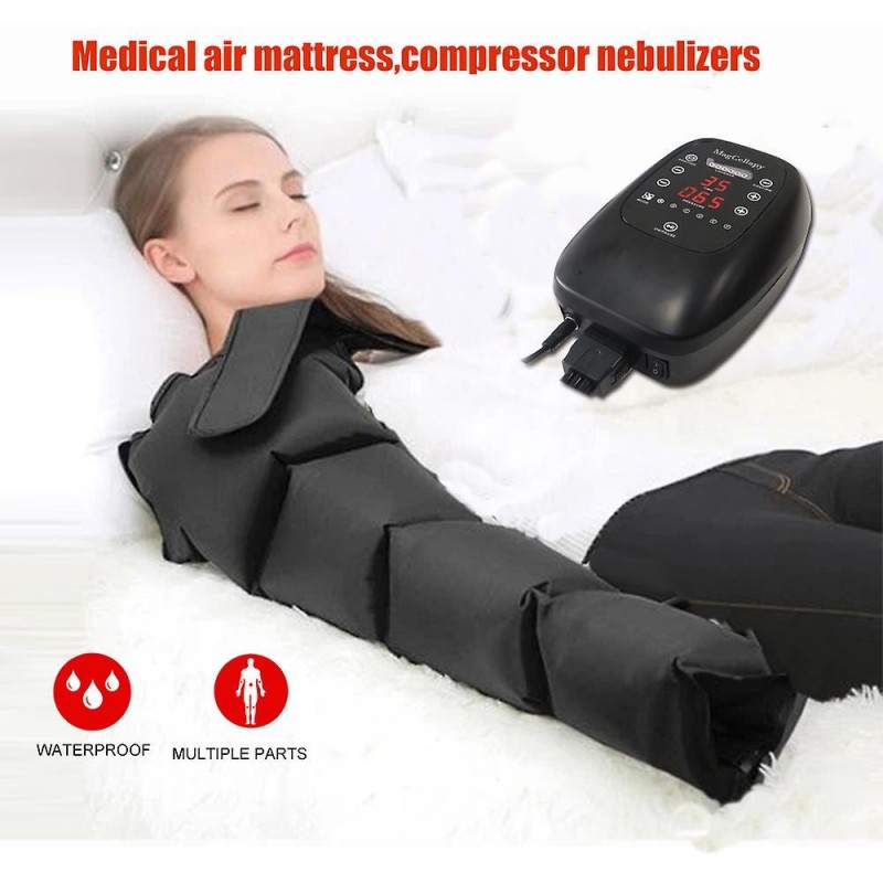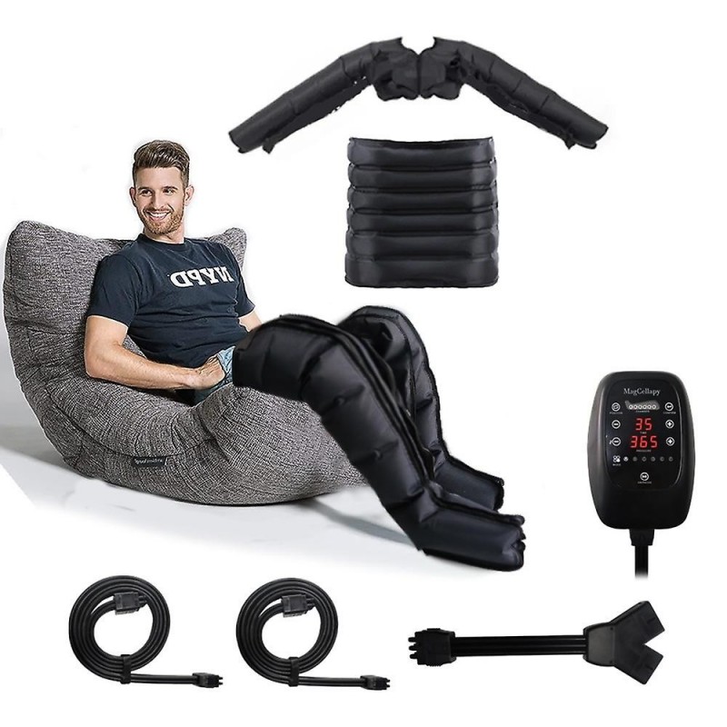 Leg massage recovery system with air compression and pressotherapy with air pumps