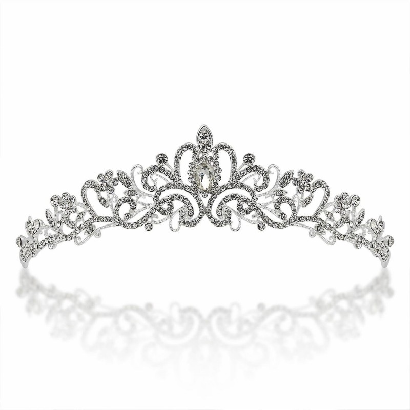 Wedding crown tiara, silver, metal with crystals, 16x22x4.5 cm