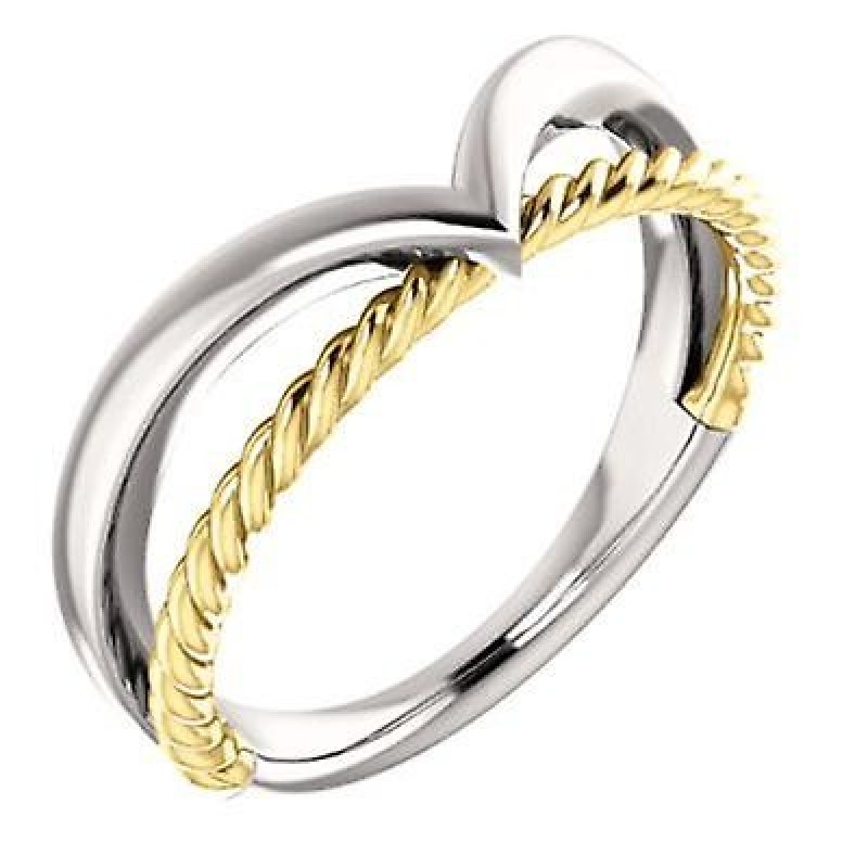 Negative Space Rope Ring in 14k White Gold and Polished Yellow Gold, Size 6.5, Gift