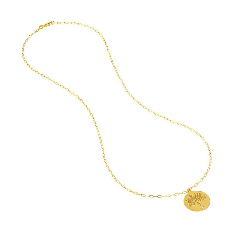 14k yellow gold adjustable necklace with 0.015 dwt diamond tree of life medallion
