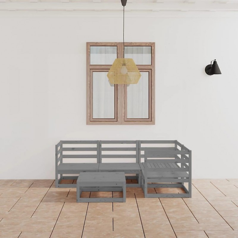 Color: Gray Material: Solid pine wood Middle/corner sofa dimensions (each): 70 x 70 x 67 cm (W x D x H) Table dimensions: 70 x 70 x 30 cm (W x D x H) Assembly required: Yes Maximum load capacity (per seat): 110 kg Delivery includes: 3 corner sofa sections, 1 middle sofa section, 1 table