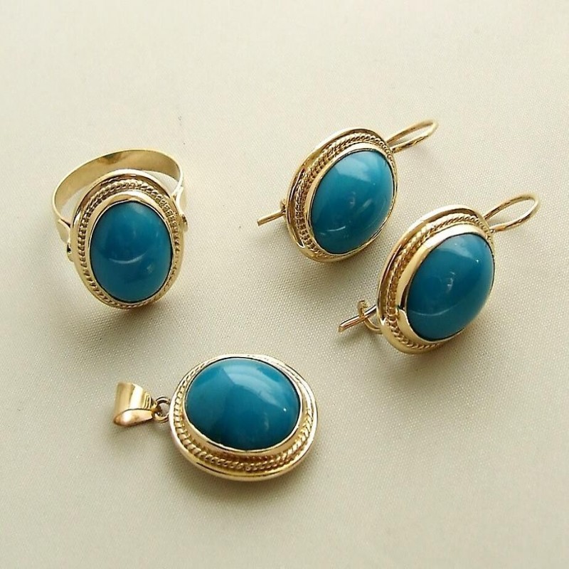 Note: Christian ??Material: 14K Rose Gold ? Gemstone: Turquoise ? Shape: Classic ? Pair: 17 ? ?Ring: ? Citrine: ? ?Earrings: ? For: Ladies? EAN: 8719878002666 Any ring size is possible.