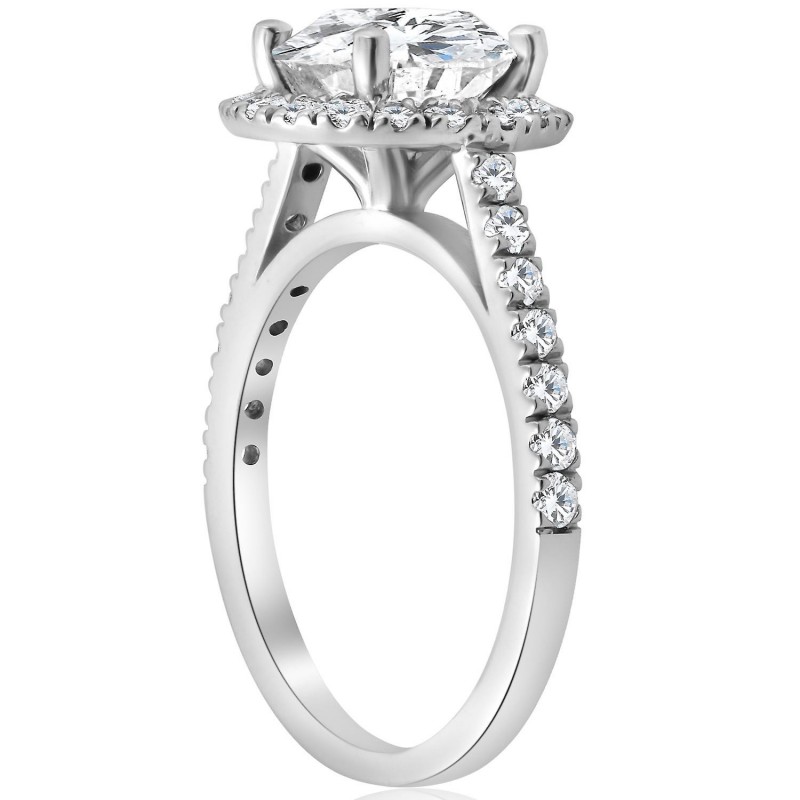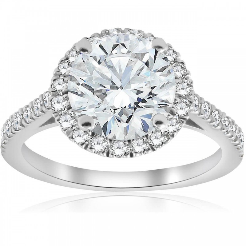 14k white gold 2 1/2 carat halo-cut round diamond engagement ring